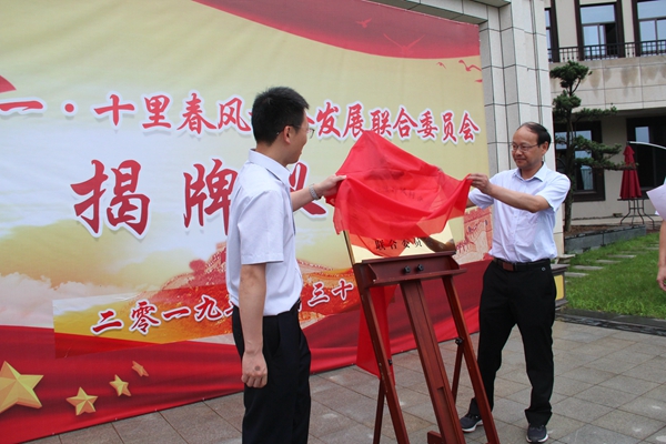 6月30日上午,中共文一十里春风村企发展联合委员会在天门镇文一十里春风办公大楼广场正式揭牌,区委常委、组织部长朱长青出席揭牌仪式并讲话。