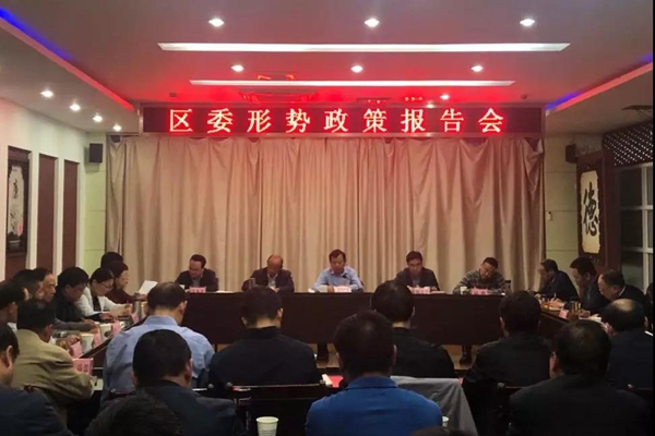 10月25日上午,区委形势政策报告会在区委一楼会议室举行。会议的主要目的是引导党员领导干部自觉观大局、明大势,进一步把对当前形势的认识统一到党中央及省市委的判断和要求上来,遵循客观规律,把握时代特征,找准做好我区改革发展稳定各项工作的切入点和突破口,推动高质量发展更深一层、更进一步。区委书记汪发进主持会议并作形势政策报告。区委副书记、区长姚贵平,区人大常委会主任汪光明,区政协主席陆峰,区委副书记沈永平,区委常委、纪委书记、监委主任张健,区委常委、组织部长朱长青,区委常委、宣传部长江虹,区委常委、统战部长汪阳,区人大常委会副主任陈七一、路月晴,副区长周昌胜、吴玲娟,区政协副主席张等出席报告会。