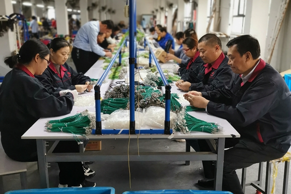 根据订单交期要求,除紧急工作任务处理,其余时间均奋战在生产一线,全力支援车间生产,争取把上半年因疫情影响的损失“抢”回来。看似简单的线束组装工作也考验着大家的耐心和细心;在生产过程中,遇到不清楚的地方,年轻的党员还虚心地向车间师傅请教。支部全体党员,个个以身作则,严格要求自己。其他部门职员见党员同志带头下车间,各部门职员也都主动加入到支援一线生产的大军当中,为客户增值、为企业增效,充分体现了泰成实业党支部“心往一处想、劲往一处使”的团队合作精神。在车间,无论哪个岗位,都可以看到埋头苦干,专心致志的身影,此刻他们都是最可爱的人。经过全体党员和职工的团结协作,顺利完成了61540套线束组件产品任务。