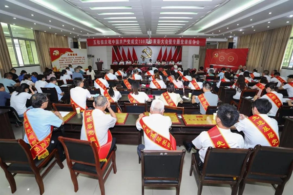 会议宣读了《五松镇党委关于表彰先进基层党组织、优秀共产党员、优秀党务工作者的决定》,并为获奖代表颁奖。同时,对10名党龄50年以上的老党员,颁发“光荣在党50年”纪念章,由少先队员献上鲜花,气氛庄重热烈。