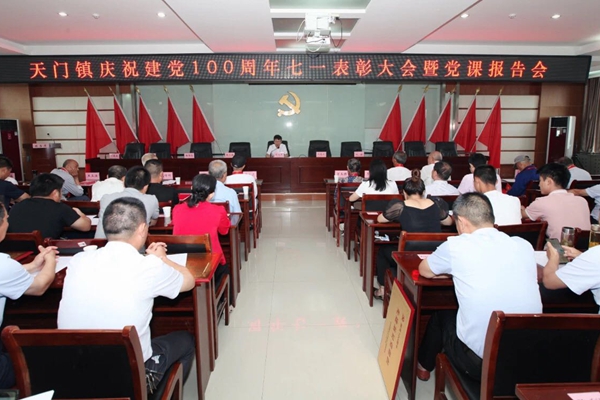 百年征程波澜壮阔,百年初心历久弥坚。6月26日,天门镇召开庆祝中国共产党成立100周年七一表彰大会暨党课报告会。天门镇党政班子成员,各村(社区)书记,镇直支部书记,站所负责人,“光荣在党50年”老党员代表、受表彰的优秀共产党员代表、优秀党务工作者代表和先进基层党组织书记参加会议,天门镇党委副书记、镇长何志远主持会议。