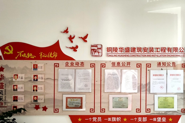 近年来,五松镇华盛建筑安装有限公司党支部认真贯彻上级有关非公党建工作要求,以“党建引领,为中华盛世添砖加瓦;匠心筑梦,为盛世中华立柱浇梁”为发展理念,以“发挥红色效应 打造‘三个一流’”为党建品牌,通过党建引领、带动和聚力,推进企业不断强化管理、完善制度,努力建设一流工程,创造一流业绩,树立一流形象。